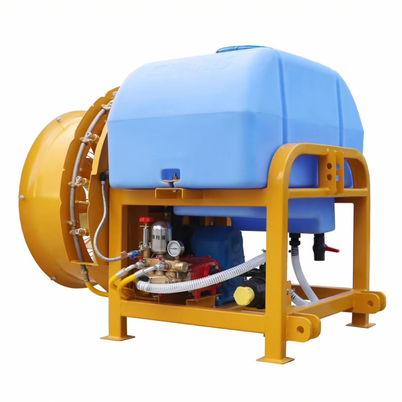 Conçus pour la durabilité et la performance, les composants clés utilisent des matériaux de première qualité : le réservoir du pulvérisateur est fabriqué en polyéthylène de qualité alimentaire, résistant à la corrosion causée par les produits chimiques et empêchant la rouille ; la pompe haute pression adopte des roues en acier inoxydable pour un fonctionnement stable à long terme ; et le ventilateur à air comprimé est doté de pales en fibre de verre renforcées, équilibrant une conception légère avec une forte puissance éolienne pour pénétrer dans les auvents épais. Tous les joints utilisent des joints en caoutchouc anti-fuite, minimisant les déversements pendant le travail.