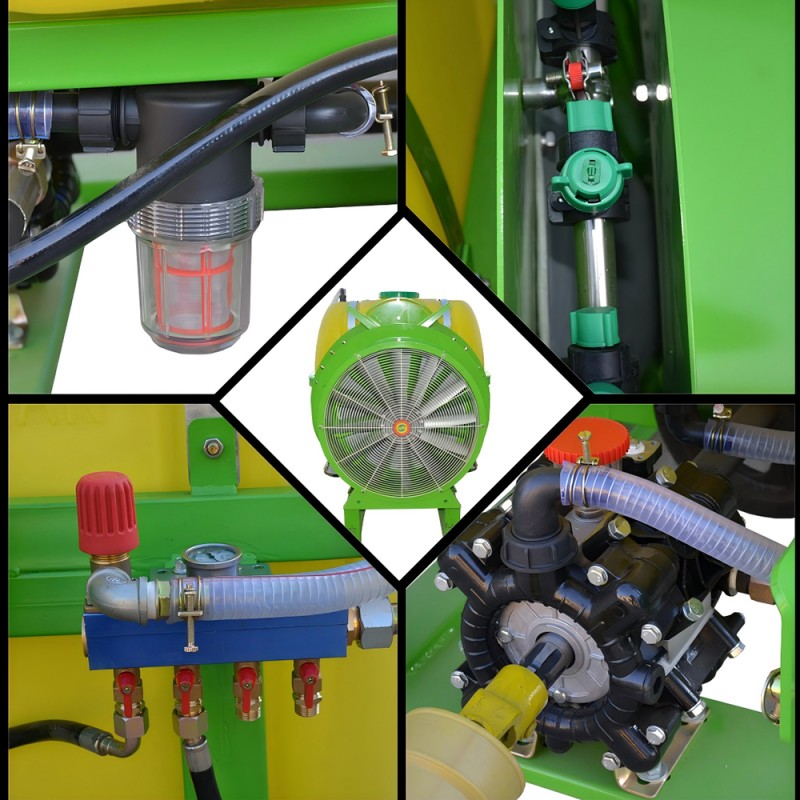 La durabilité est au cœur de ses préoccupations, avec des pièces clés conçues pour résister aux conditions agricoles difficiles : le réservoir de 200 L à 500 L est fabriqué en polyéthylène haute densité, résistant à la corrosion causée par les pesticides et les engrais ; l'arbre de prise de force est en acier allié traité thermiquement pour des performances anti-usure et une transmission de puissance fluide ; et la rampe de pulvérisation utilise un alliage d'aluminium, léger mais solide, avec une largeur réglable pour s'adapter aux différents espacements des rangées de cultures. Toutes les buses sont fabriquées en céramique résistante à l'usure, garantissant des jets de pulvérisation uniformes et durables sans colmatage.